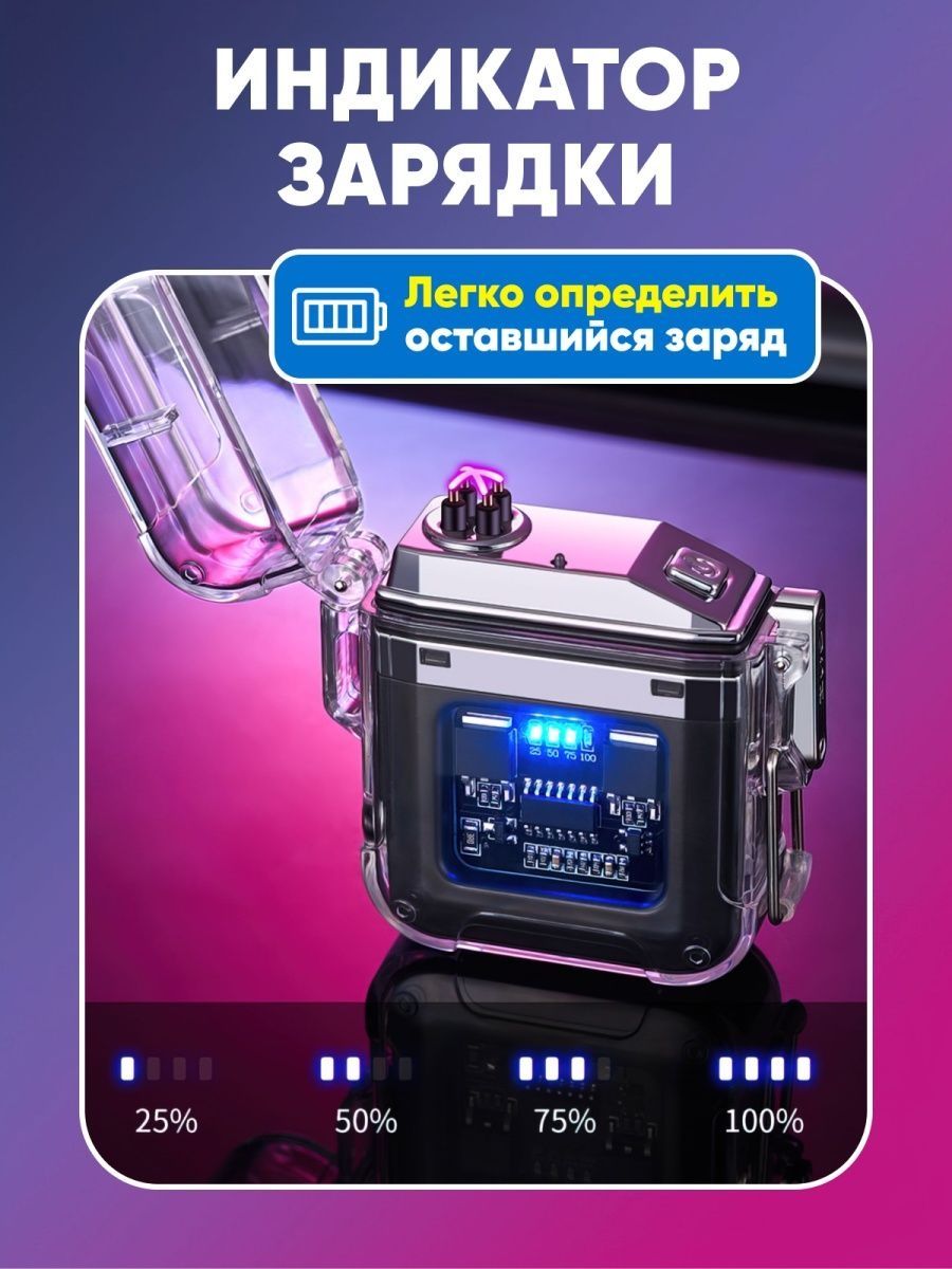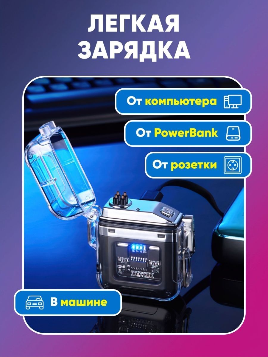 Импульсная зажигалка имеет сенсорную панель где отображается уровень заряда, также в неё встроен светодиодный фонарь. Плазменная зажигалка пригодится как в быту на кухне, так она станет полезным девайсом на природе в походе путешествии или на рыбалке. Электродуговое огниво с молниями станет надёжным спутником как дома так и в пути.